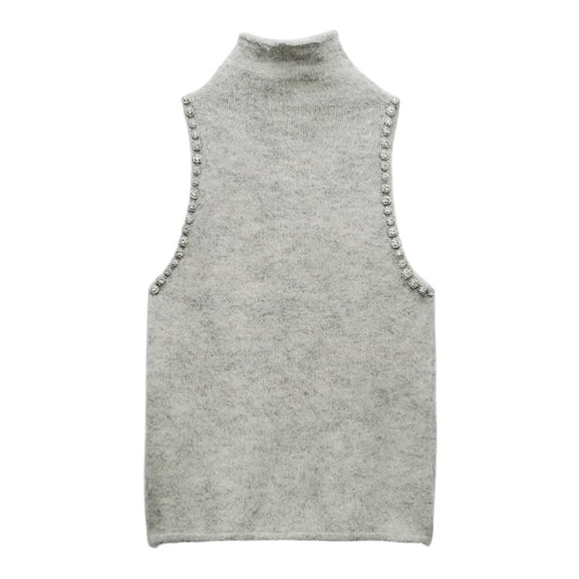 Embellished Side Knit Turtleneck Sleeveless Top size S