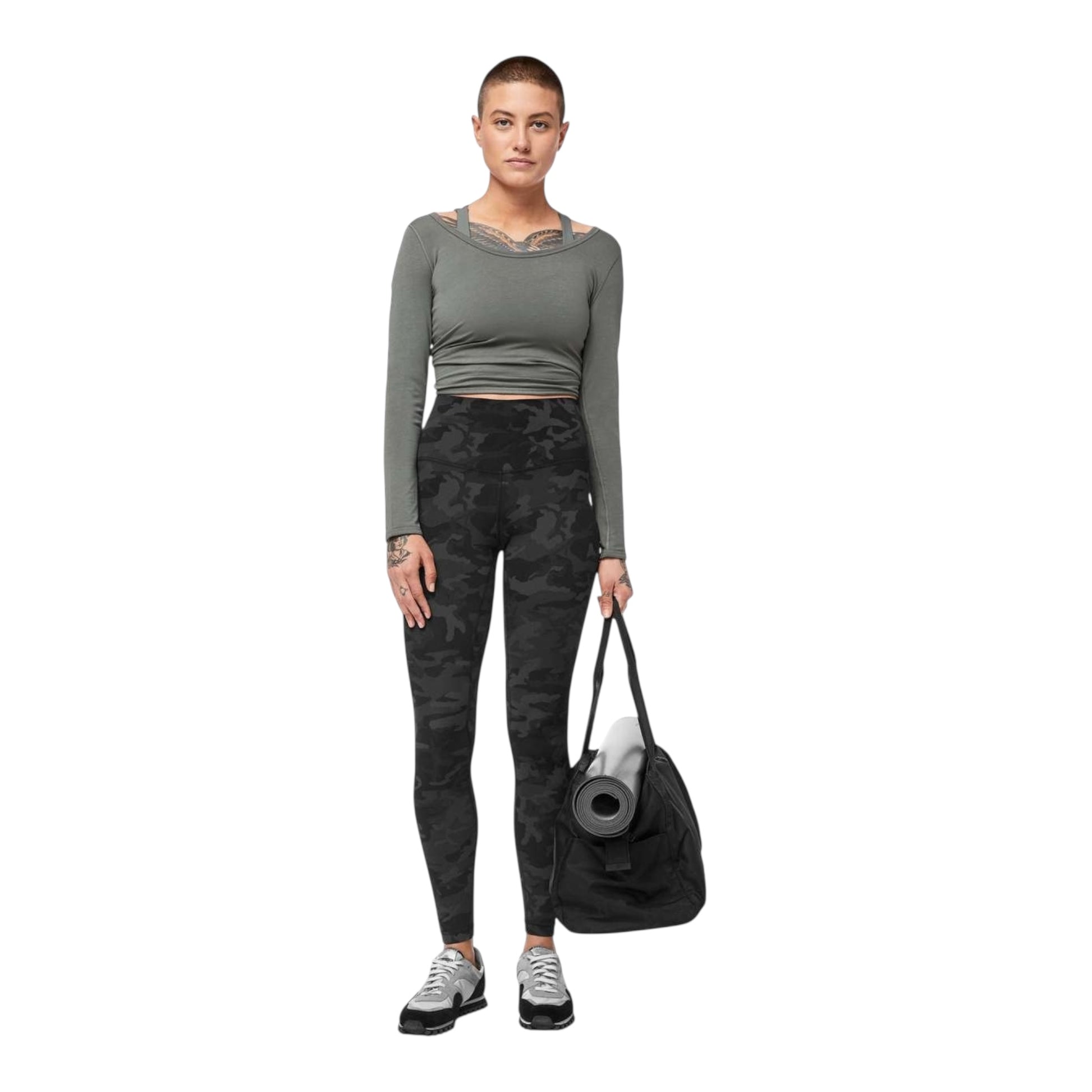 Lightweight, buttery-soft Nulu™ fabric wicks sweat and is four-way stretch