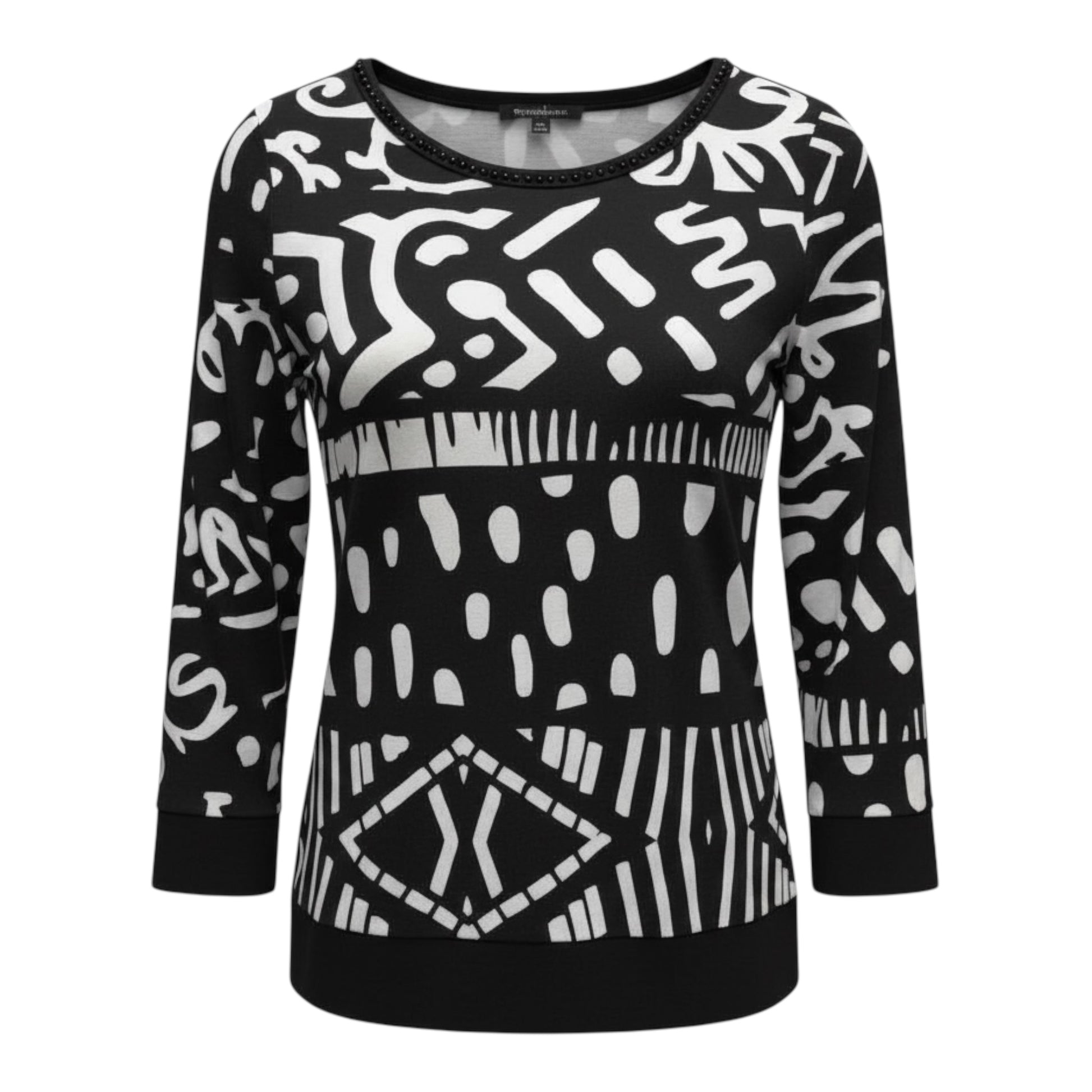 • The bottom section includes a prominent white diamond motif with internal lines and vertical line patterns on the sides.