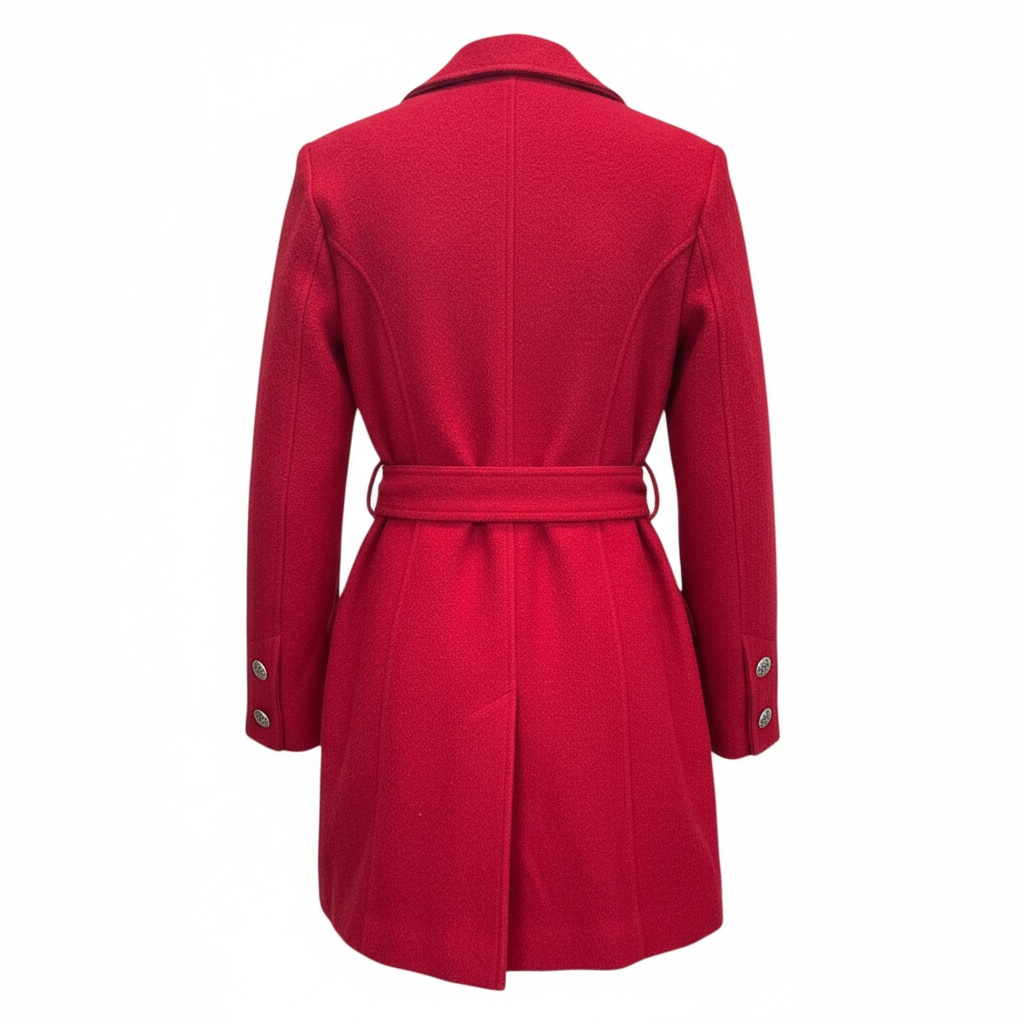 • Closure: Secured by large, decorative silver-toned buttons down the front.