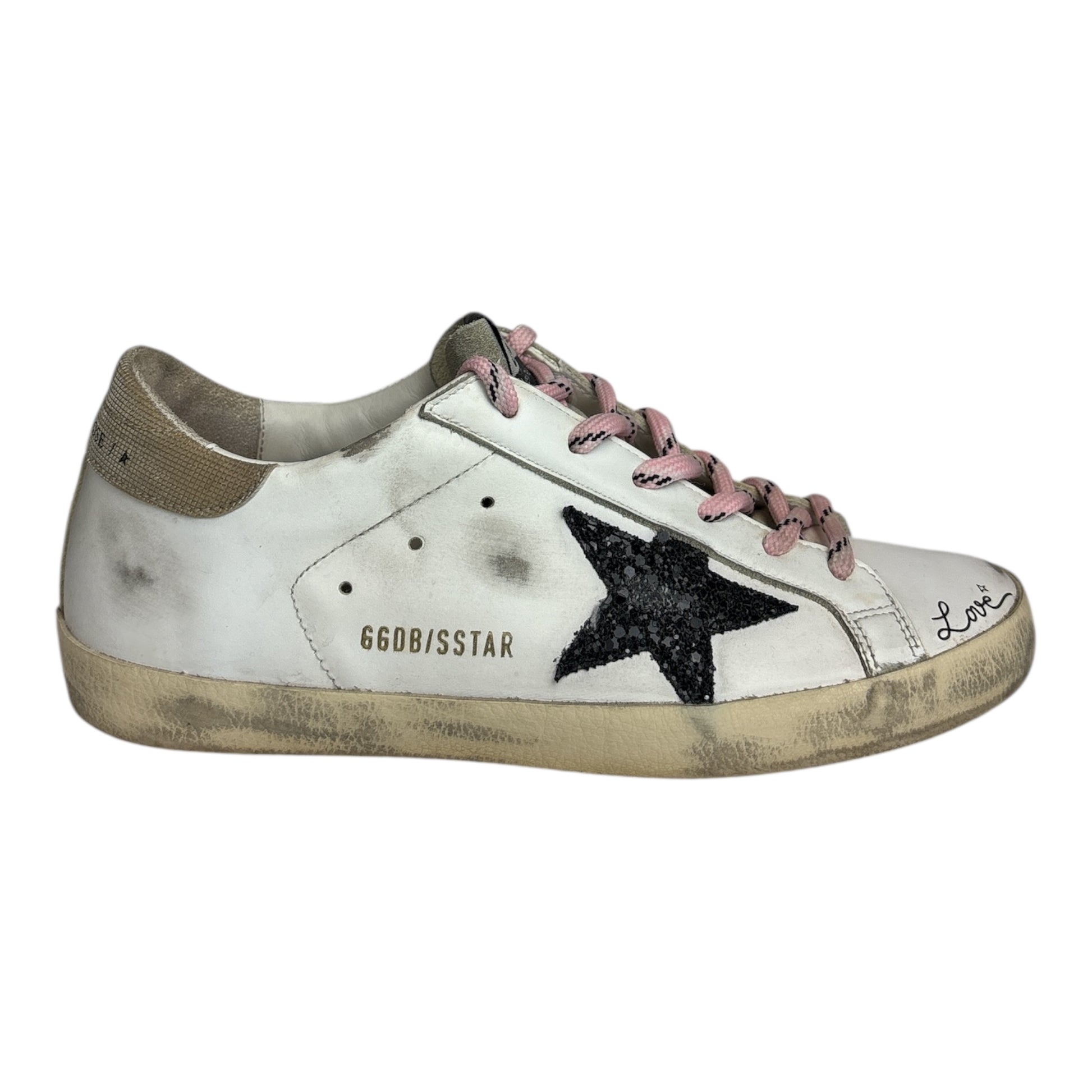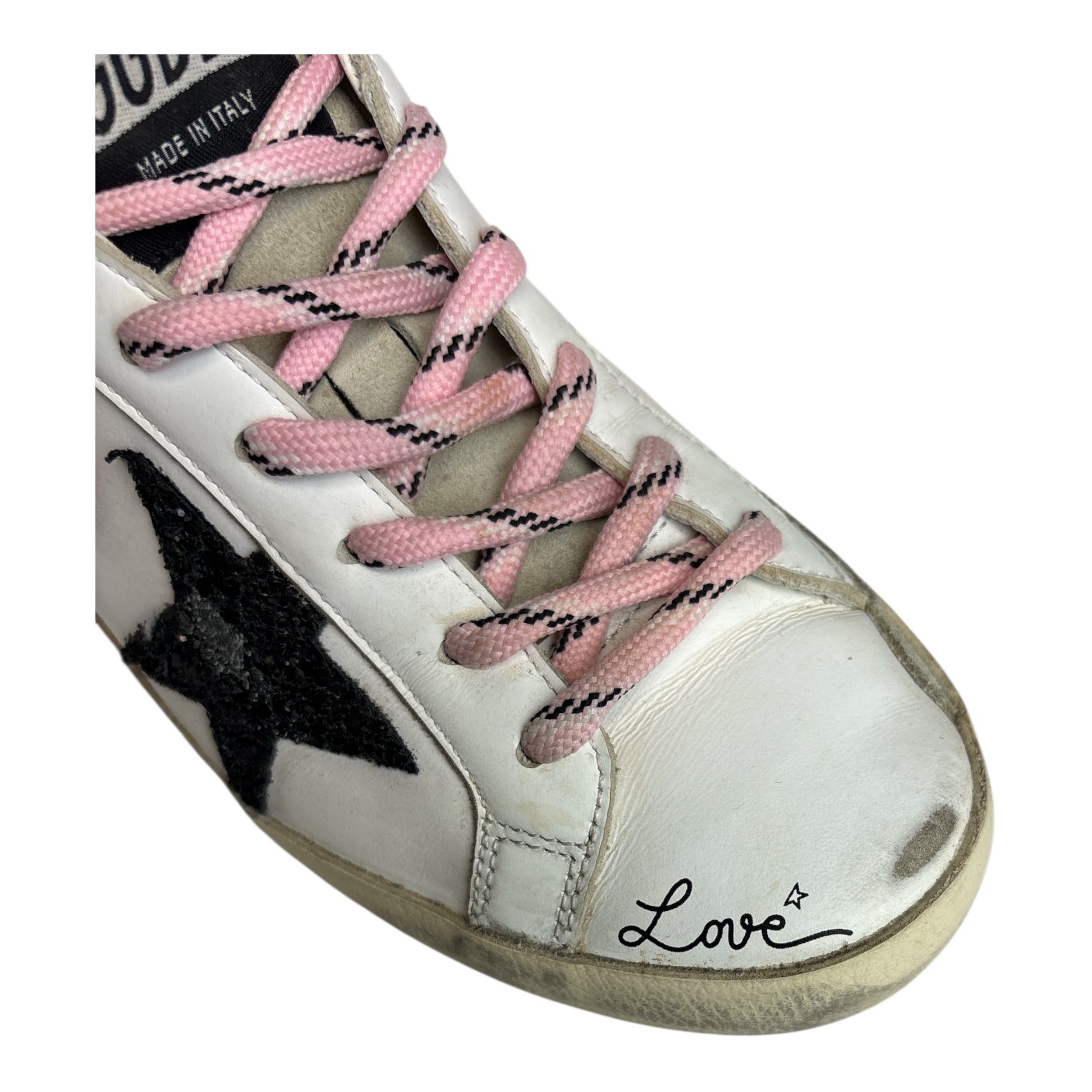 Nordstrom exclusive Has “Love” on the right sneaker Golden Goose distressed look