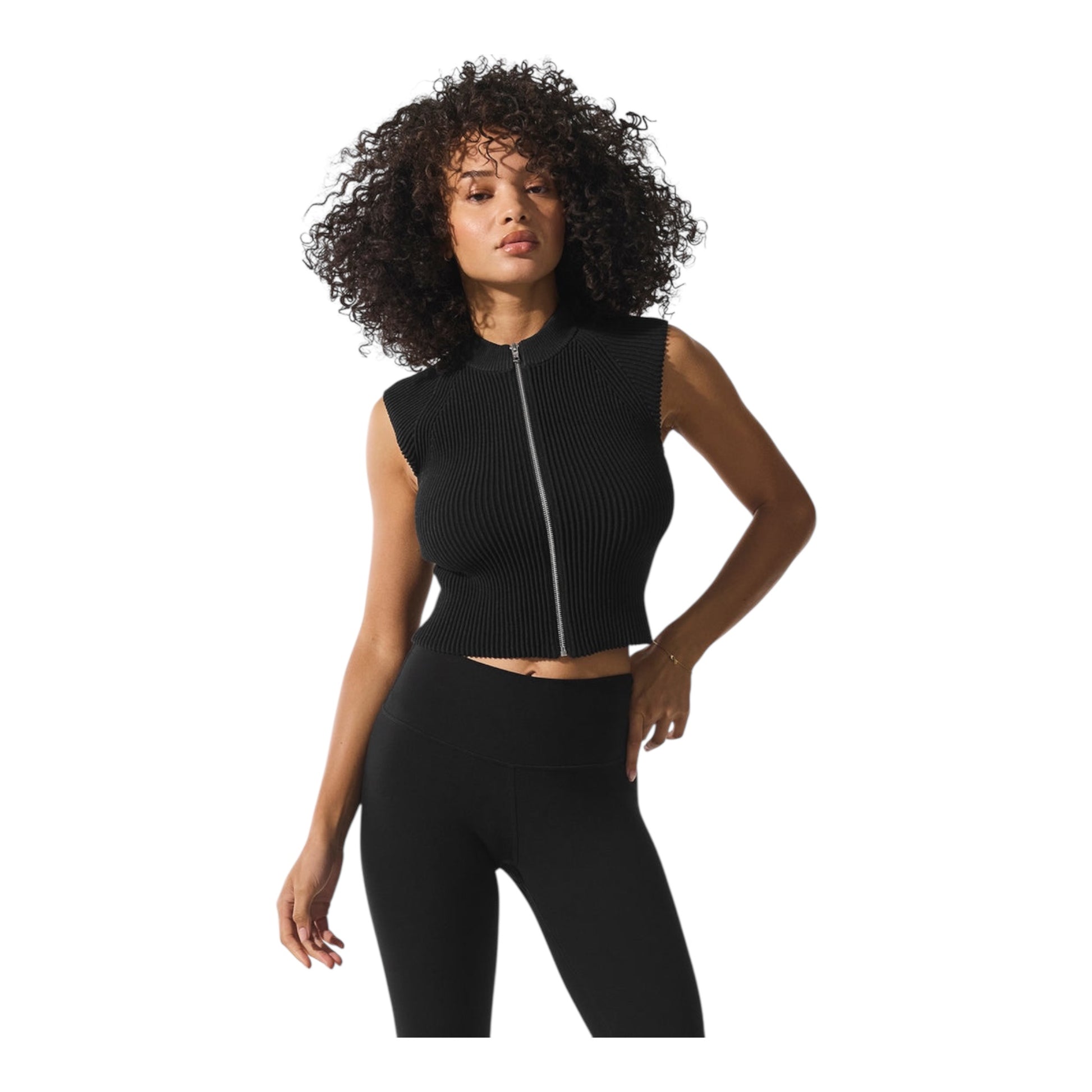ALO YOGADenim Knit Sleeveless Full Zip Top size Large