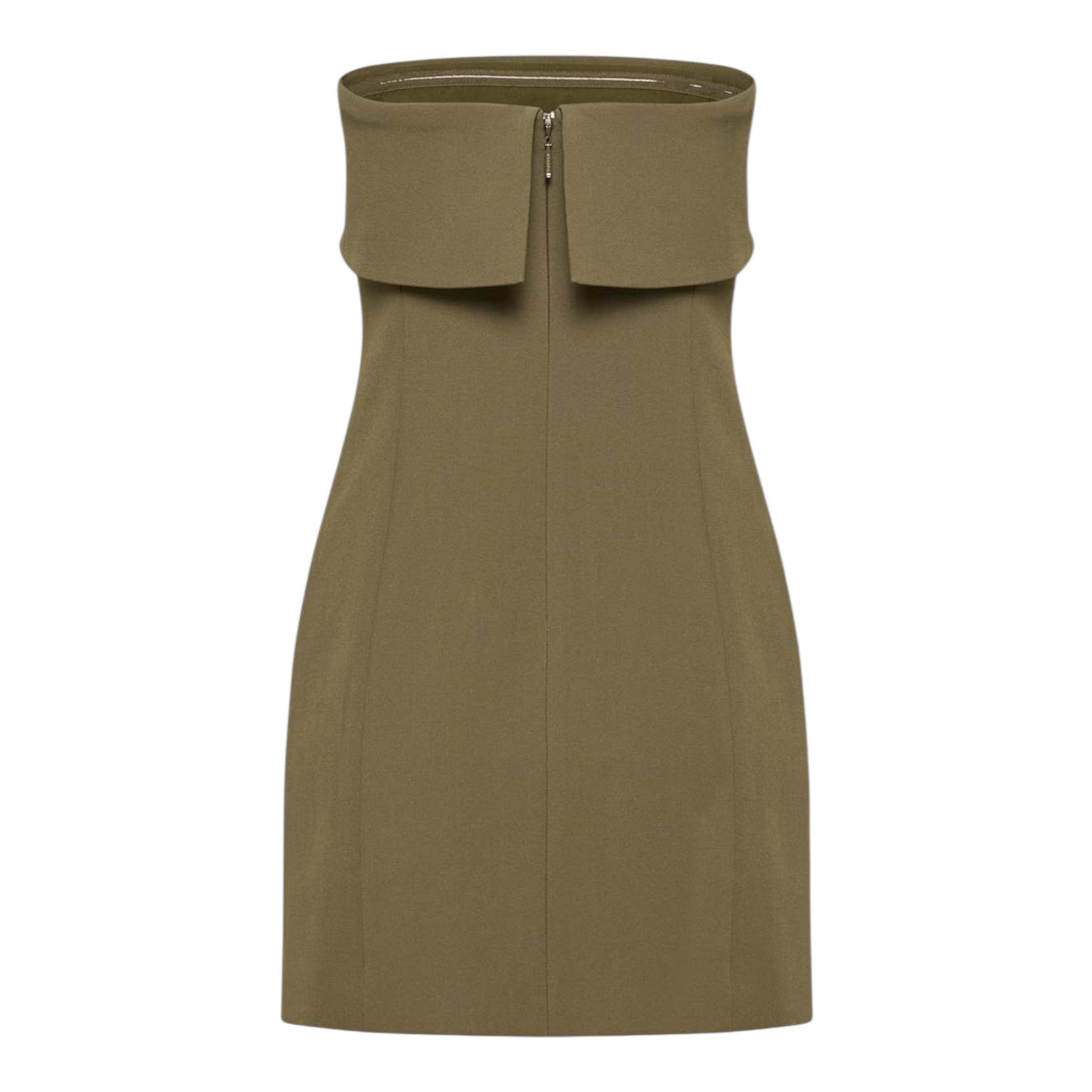 This is a strapless mini dress with princess seams for shaping. It’s made with (Re)ssential — softly structured stretch fabric that holds its form while you move easy. This fabric is sourced from a premier Portuguese mill and made with 54% recycled polyester and 26% LENZING™ ECOVERO™ Viscose.