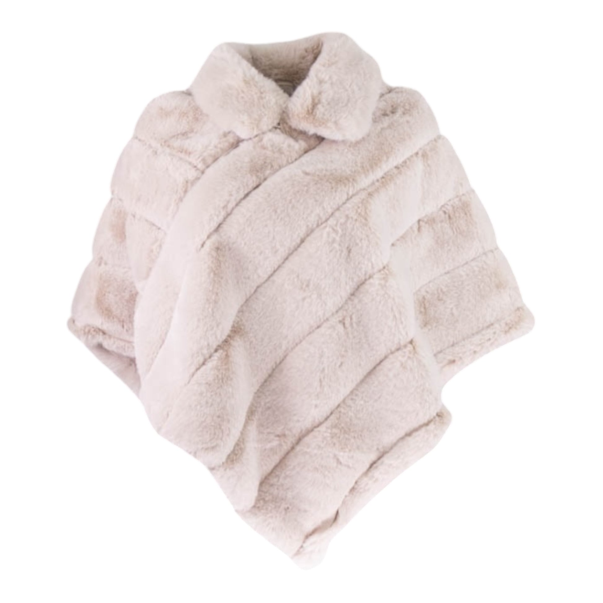 Cream coloured faux fur poncho is designed to keep you warm and stylish during colder seasons, offering a chic and versatile addition to your wardrobe.