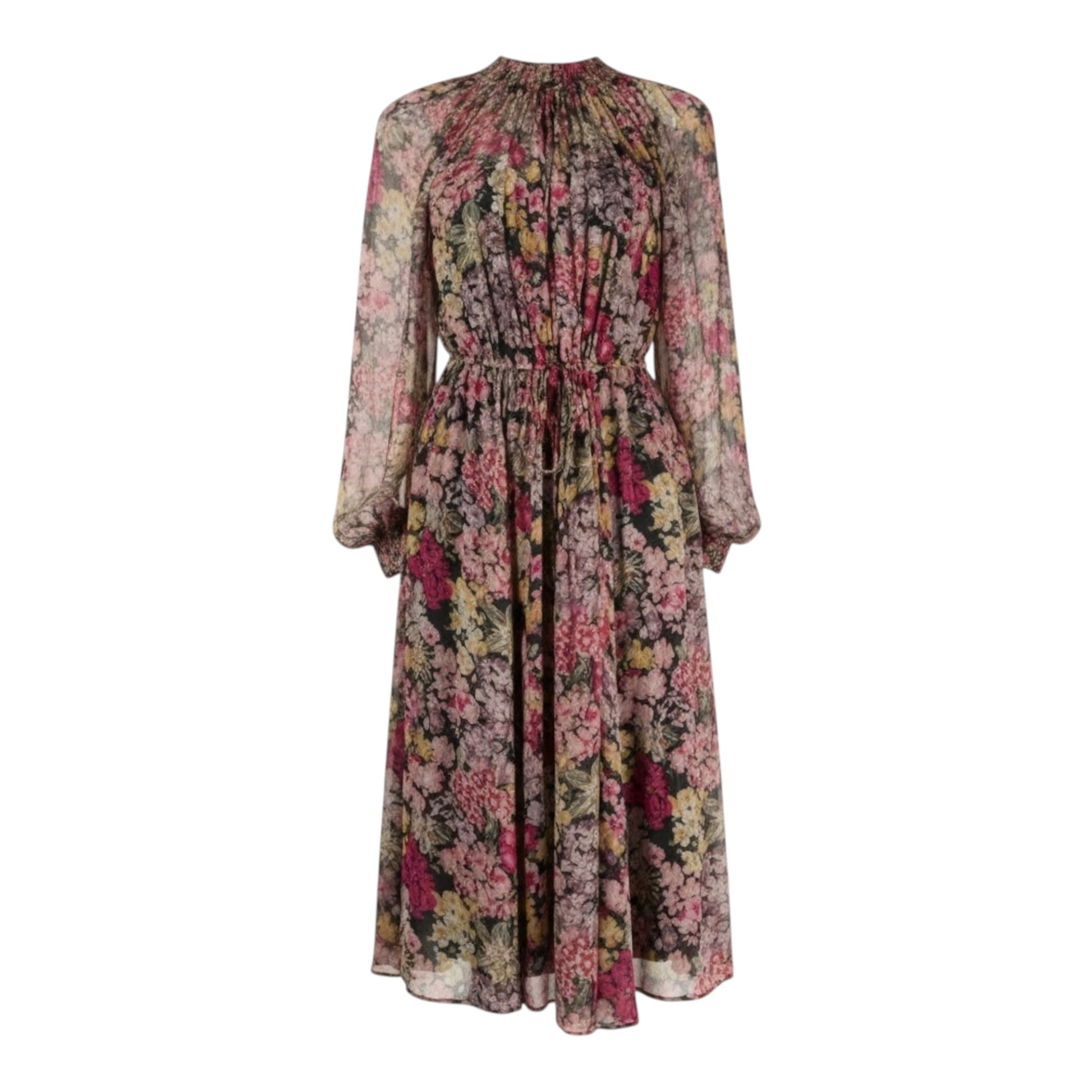 • Design: The dress features a gathered, smocked neckline and waistline, creating a relaxed yet defined silhouette.