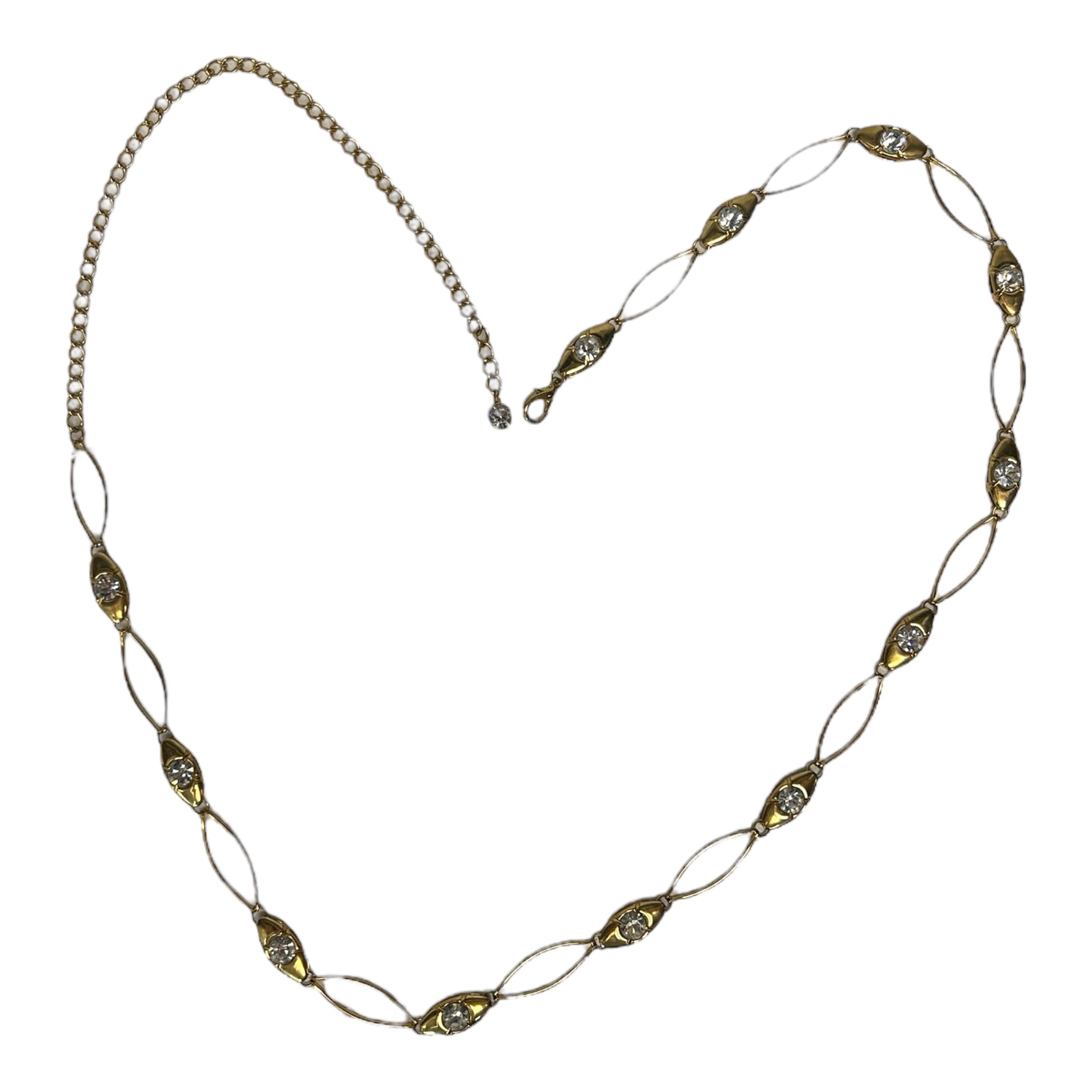 gold chain belt with embedded rhinestones and open links, lobster closure, size s, 43 inches in length