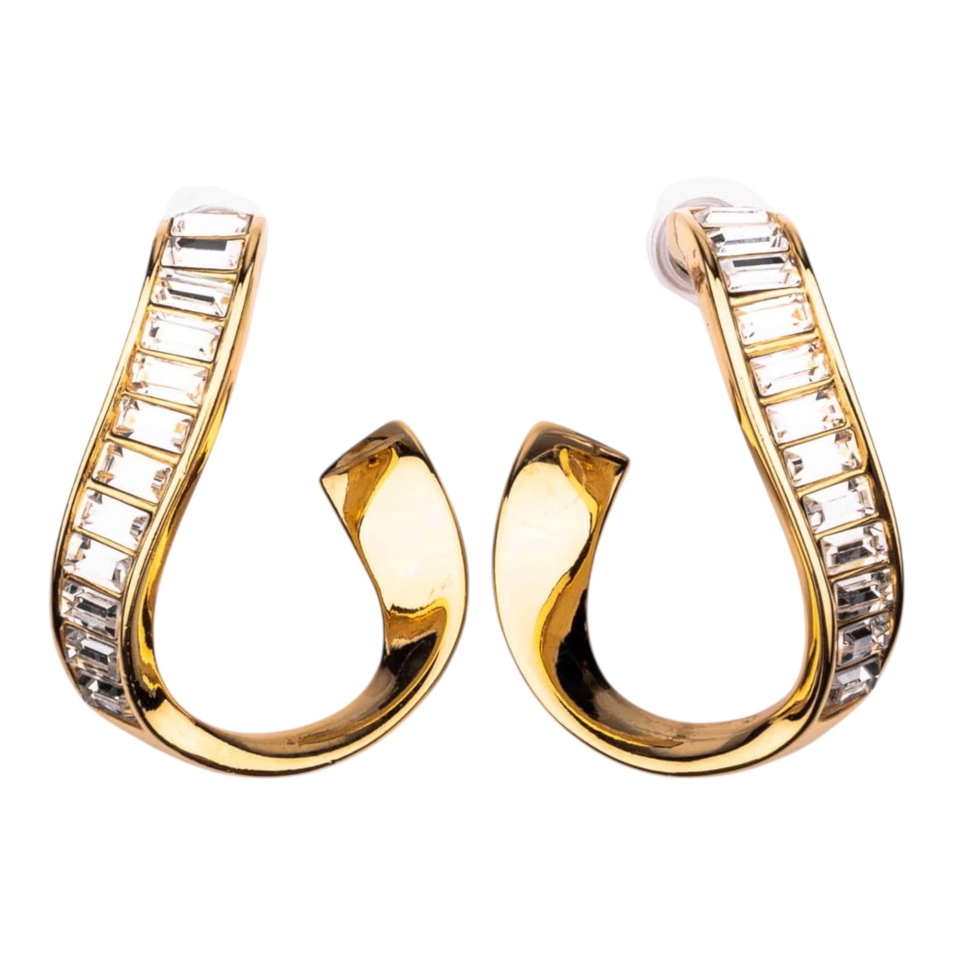 Vintage Swan Signed Crystal Pierced Earrings, with box
