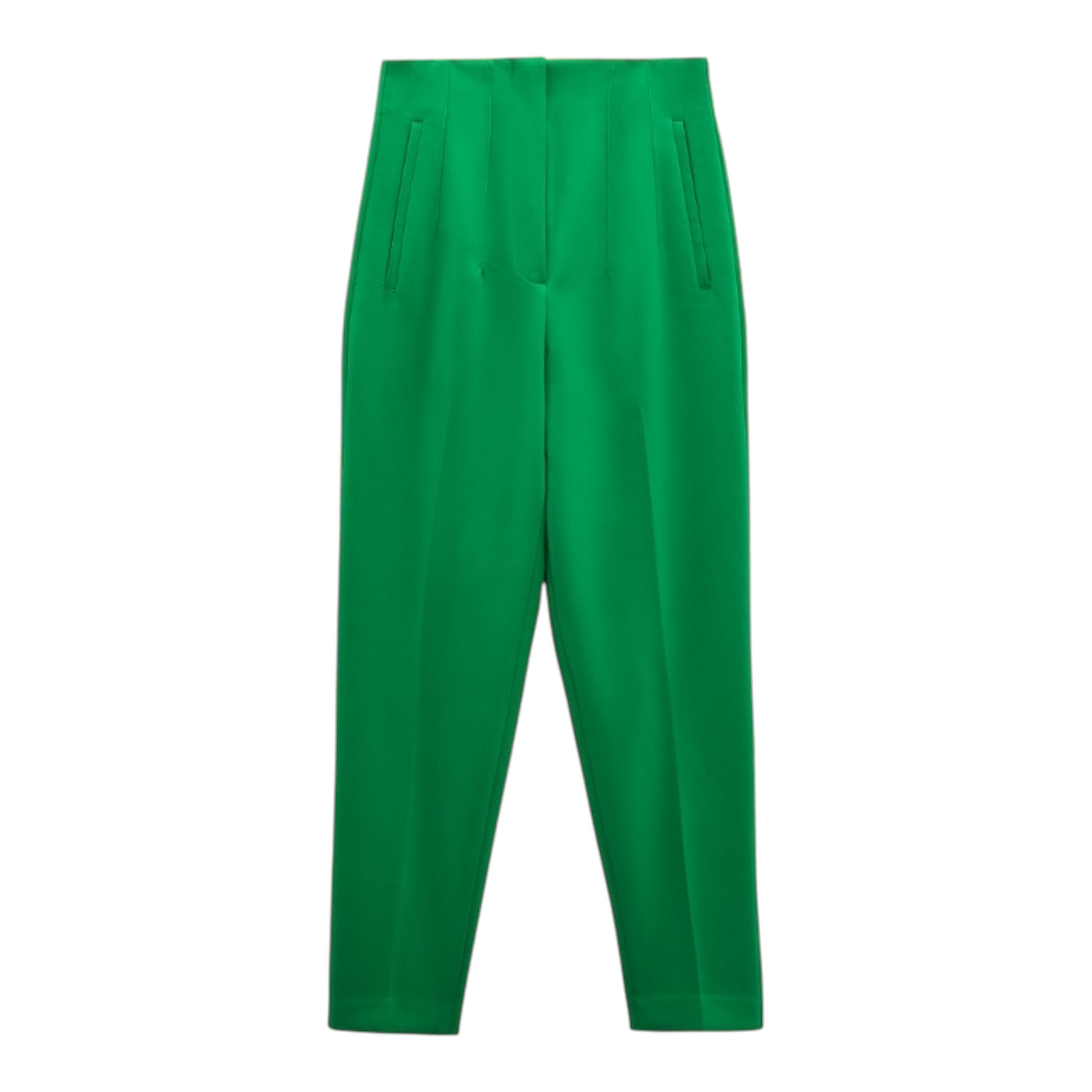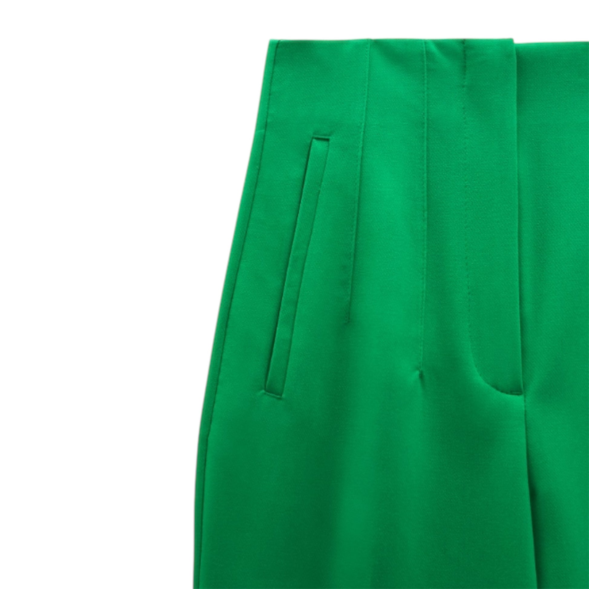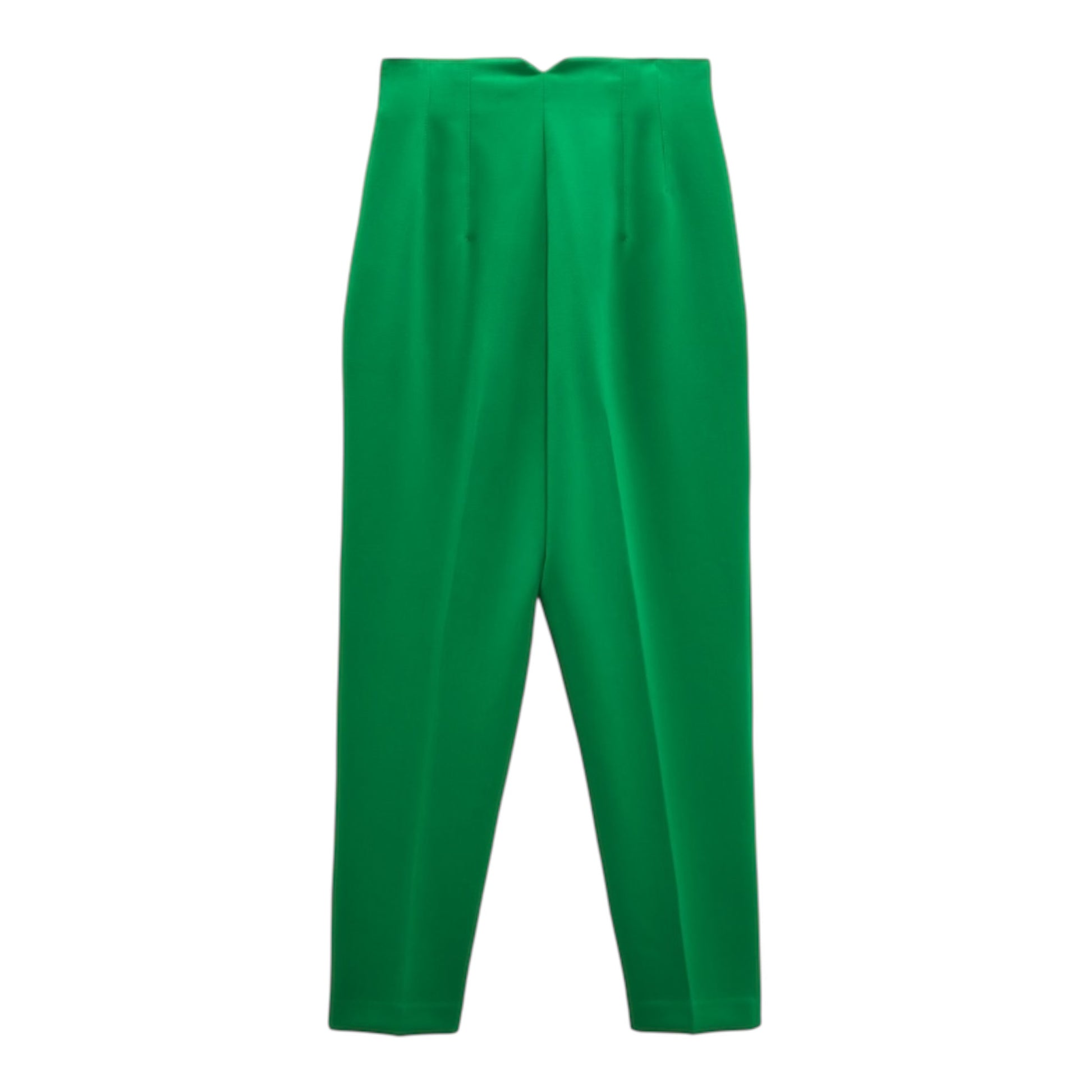 HIGH WAISTED PANTS WITH PRONOUNCED SEAMS AT FRONT AND BACK. FRONT WELT POCKETS. FRONT ZIP, METAL HOOK, AND INSIDE BUTTON CLOSURE.