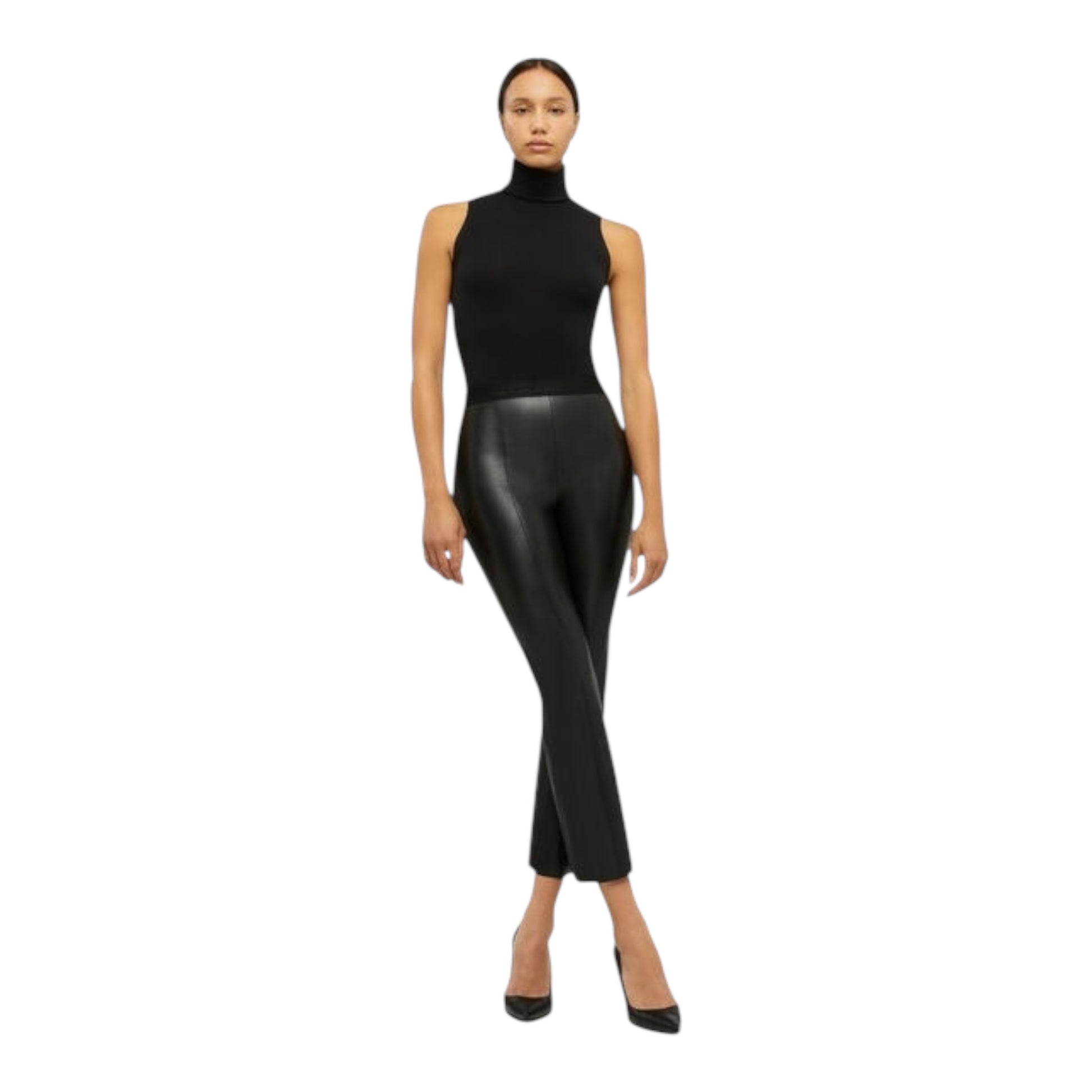 Classic flared trousers that have been rejuvenated with our super soft stretchable vegan leather to create a bold look like no other. These trousers can be effortlessly styled to add a little flavor to your office attire or as a statement piece for your evening outfit. Discover the classic charm of flared trousers refined for modern sensibilities.