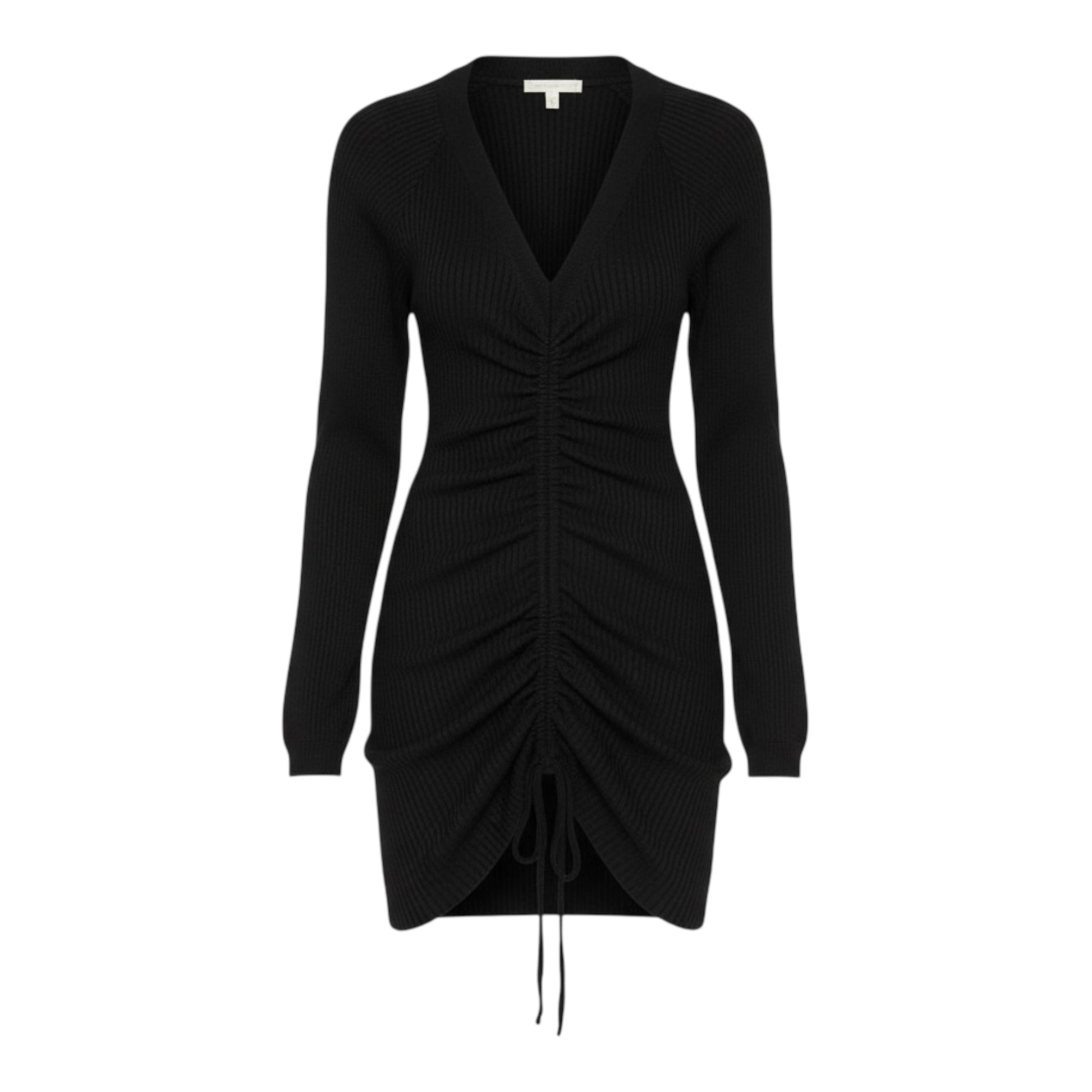• Details: Features prominent vertical ruching (gathering) running down the centre front of the dress, creating texture and a draped effect