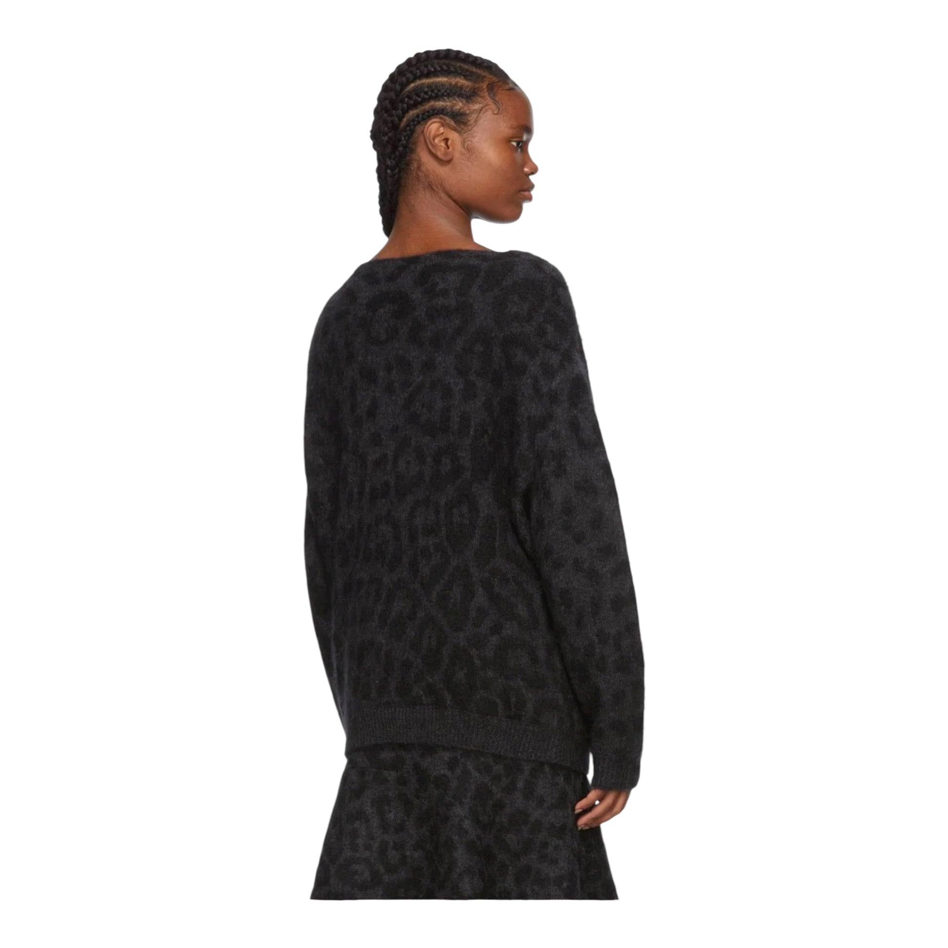 knitted, lightweight knit, no appliqués, leopard-print, scoop neckline, long sleeves, no pockets