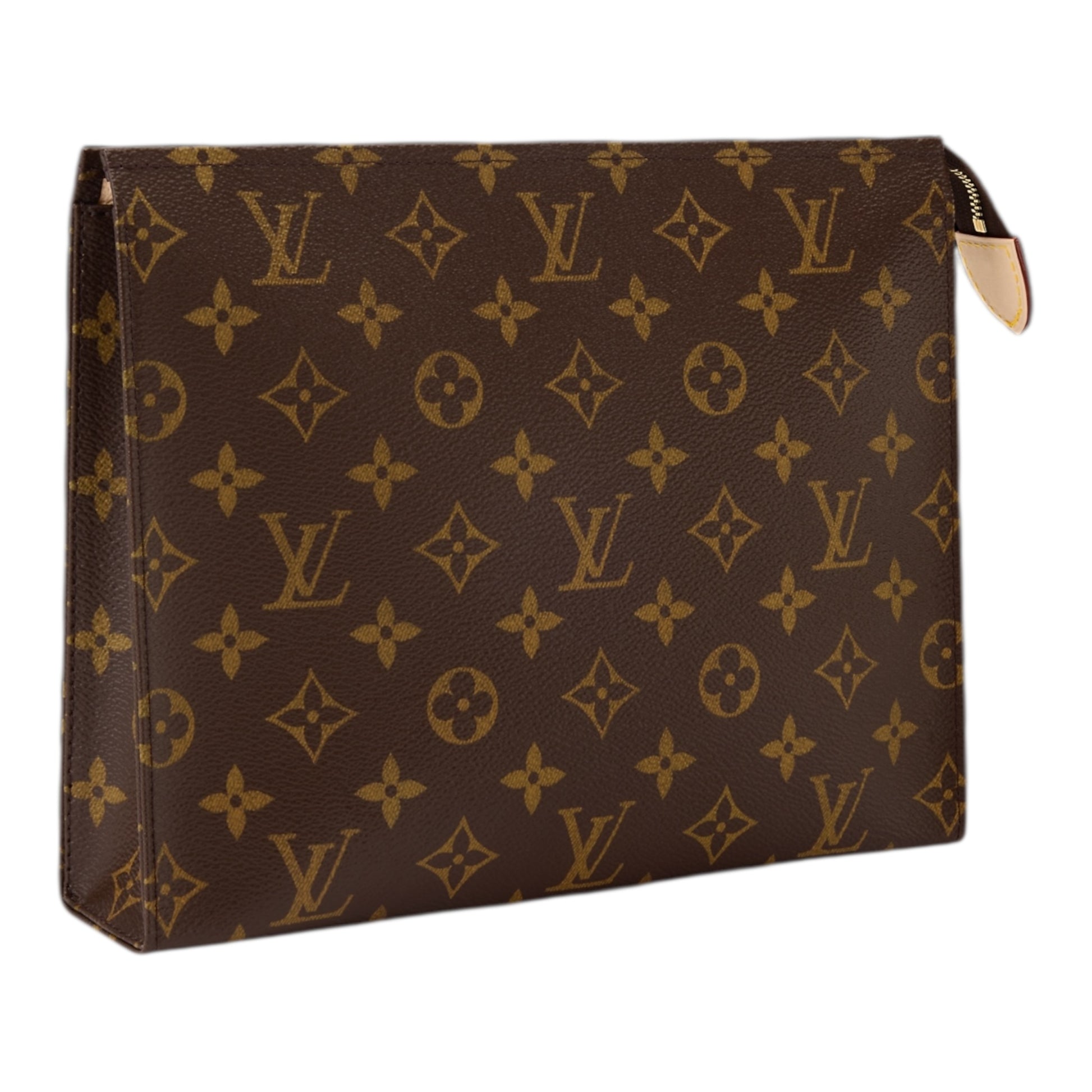 The Poche Toilette is a stylish solution for personal necessities. Made from timeless Monogram canvas with a touch of natural cowhide-leather trim, it exudes classic Louis Vuitton sophistication. Thanks to its secure closure and spacious capacity, the Poche Toilette is the perfect accessory to safely store beauty essentials while traveling.