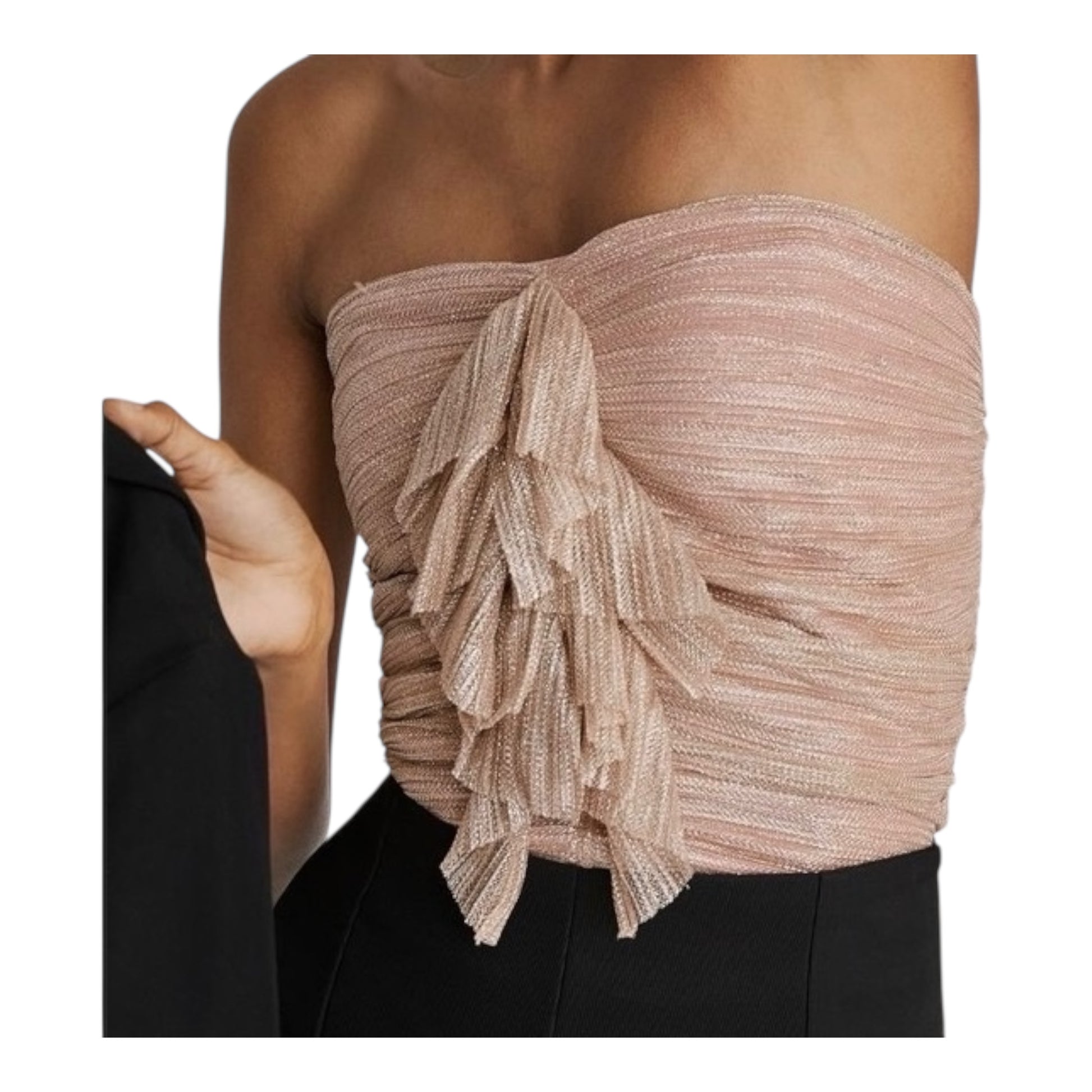 Style this ruffled top with slim jeans or velvet wide-legs for a soirée-ready ensemble that's sure to make heads turn.