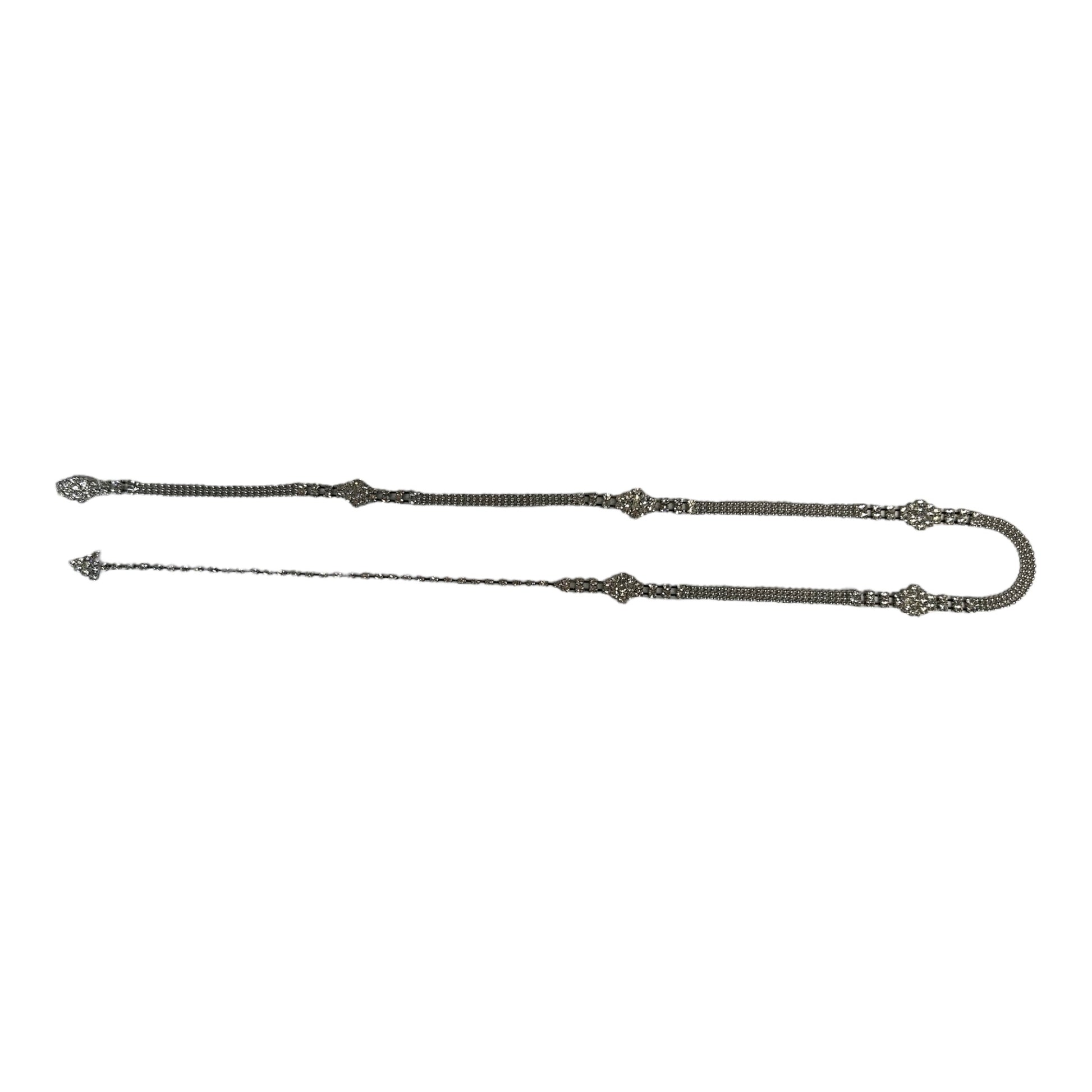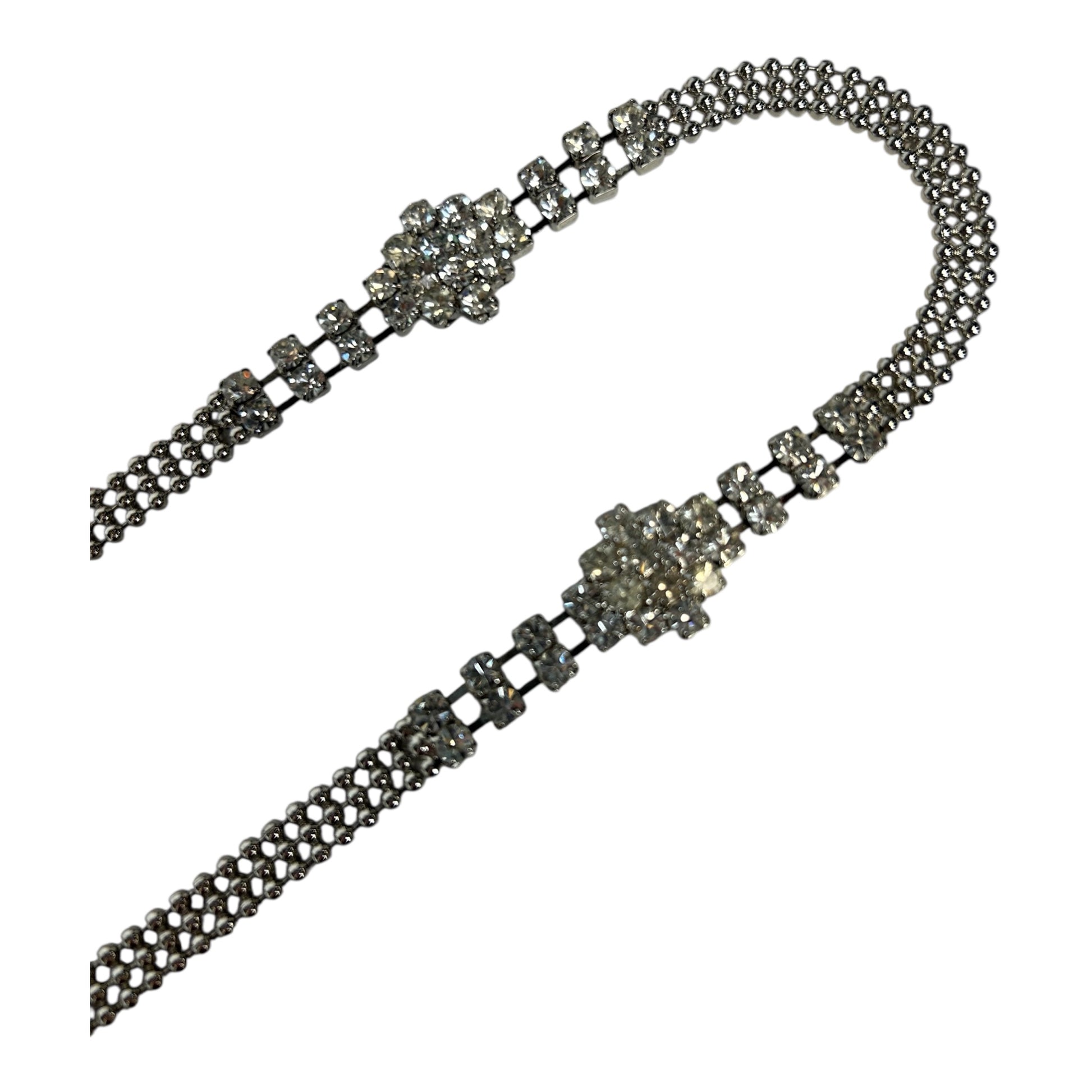 Silver tennis chain belt with hook clasp, and tennis chain clusters, 37 inches in length