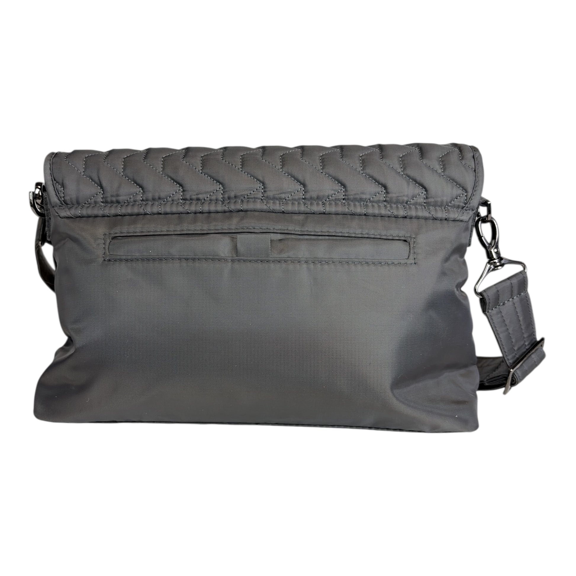 Yes, you can take it with you -- with our soar crossbody to keep every last doodad organized and in its place. Go on, peer inside. It even has a clear-view pocket, two pen holders and a retractable key chain! This medium-sized crossbody bag offers a signature soft-lined slip pocket, a spacious main compartment with a quilted magnetic flab closure. Plus, the soar comes with two strap options: 1 gunmetal shoulder strap and 1 adjustable and removable crossbody strap.