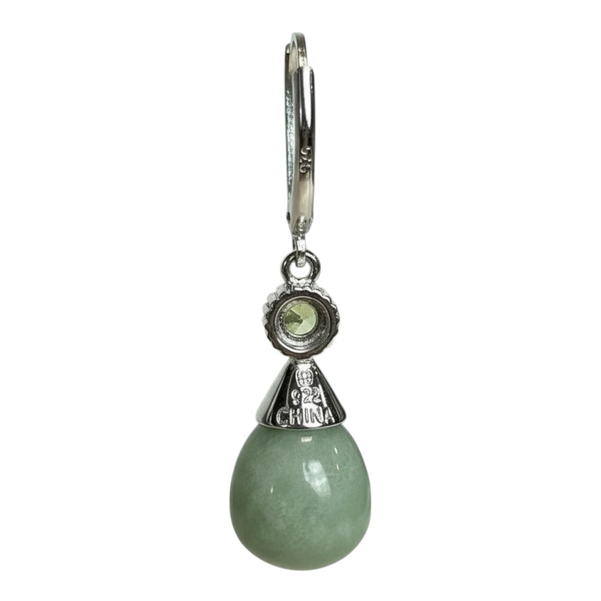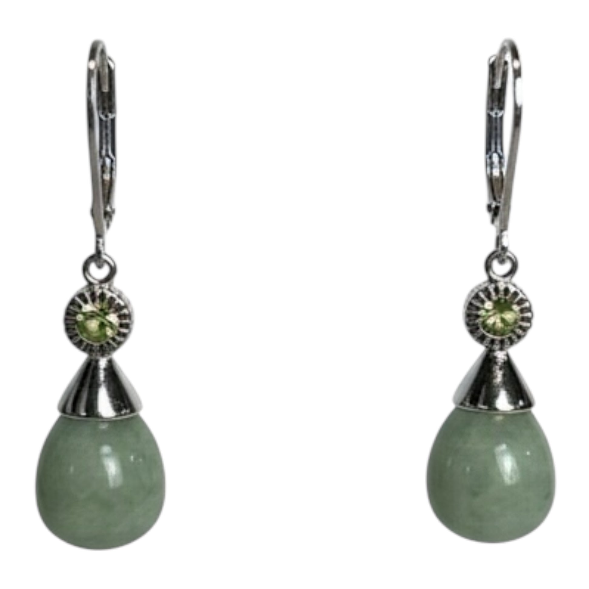 Jade and 925 sterling silver teardrop earrings with peridot accents.