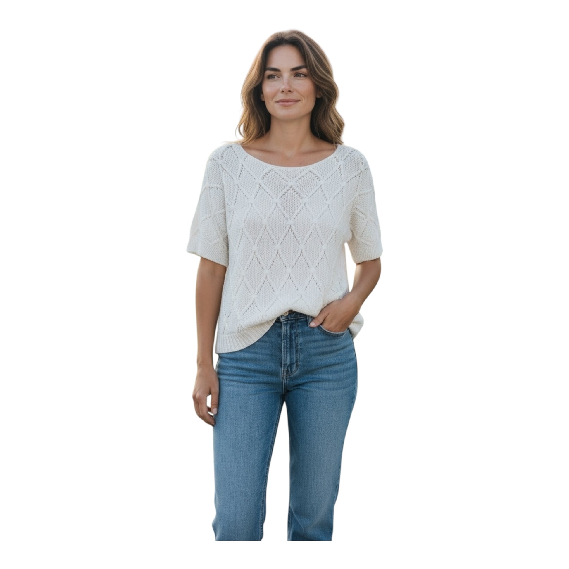 Tinsel Knit half sleeve sweater, ribbed hem.