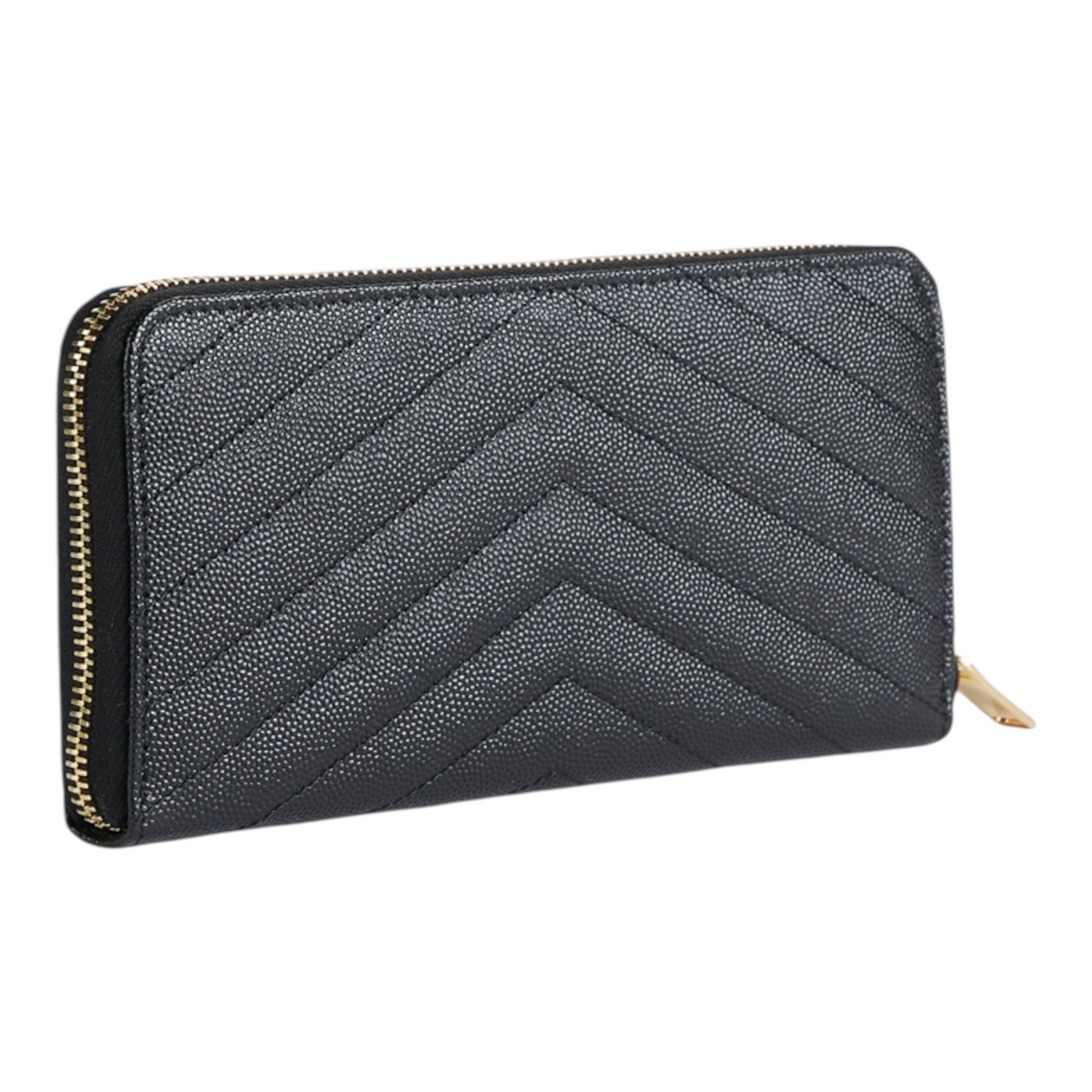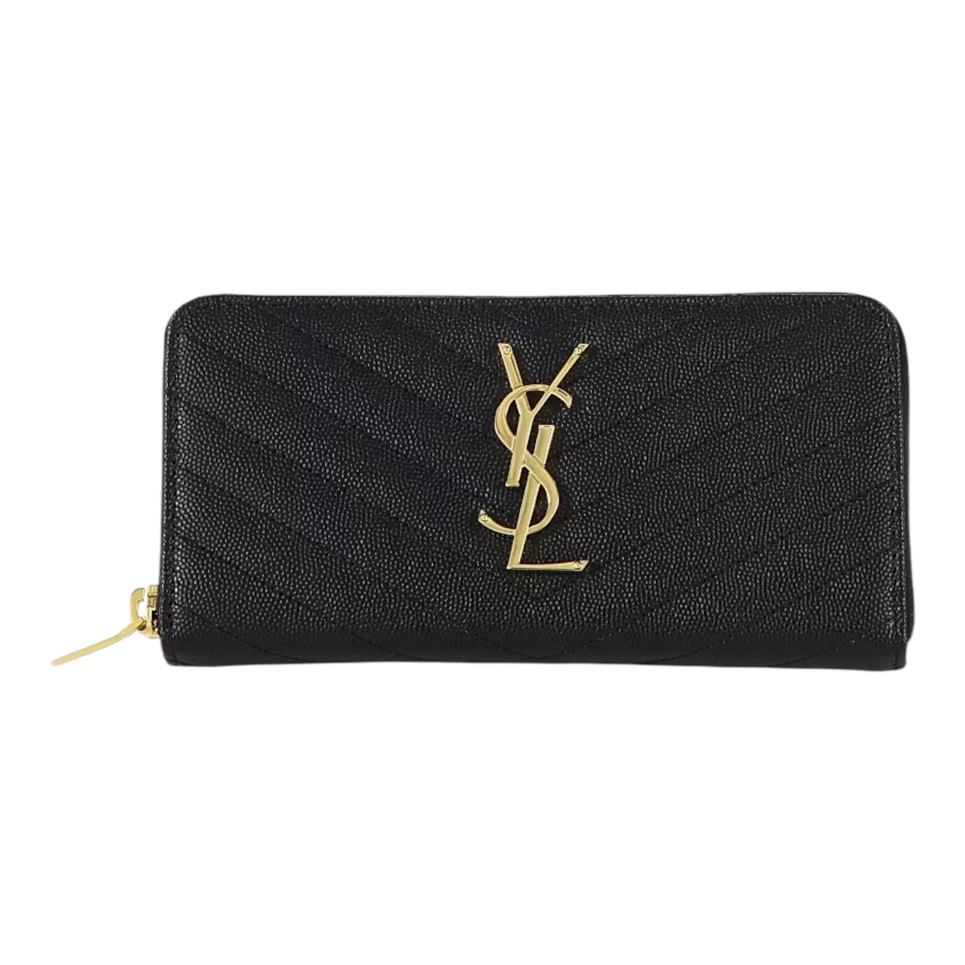 The Large Monogram Zip Wallet by Saint Laurent is a continental zip-around style, reminiscent of the Yves Saint Laurent heritage, fashioned with a bold monogram detail and pebble-grained leather. This is the perfect carry-all wallet, featuring twelve credit Card slots, one middle zip pocket, and two inside slip compartments.