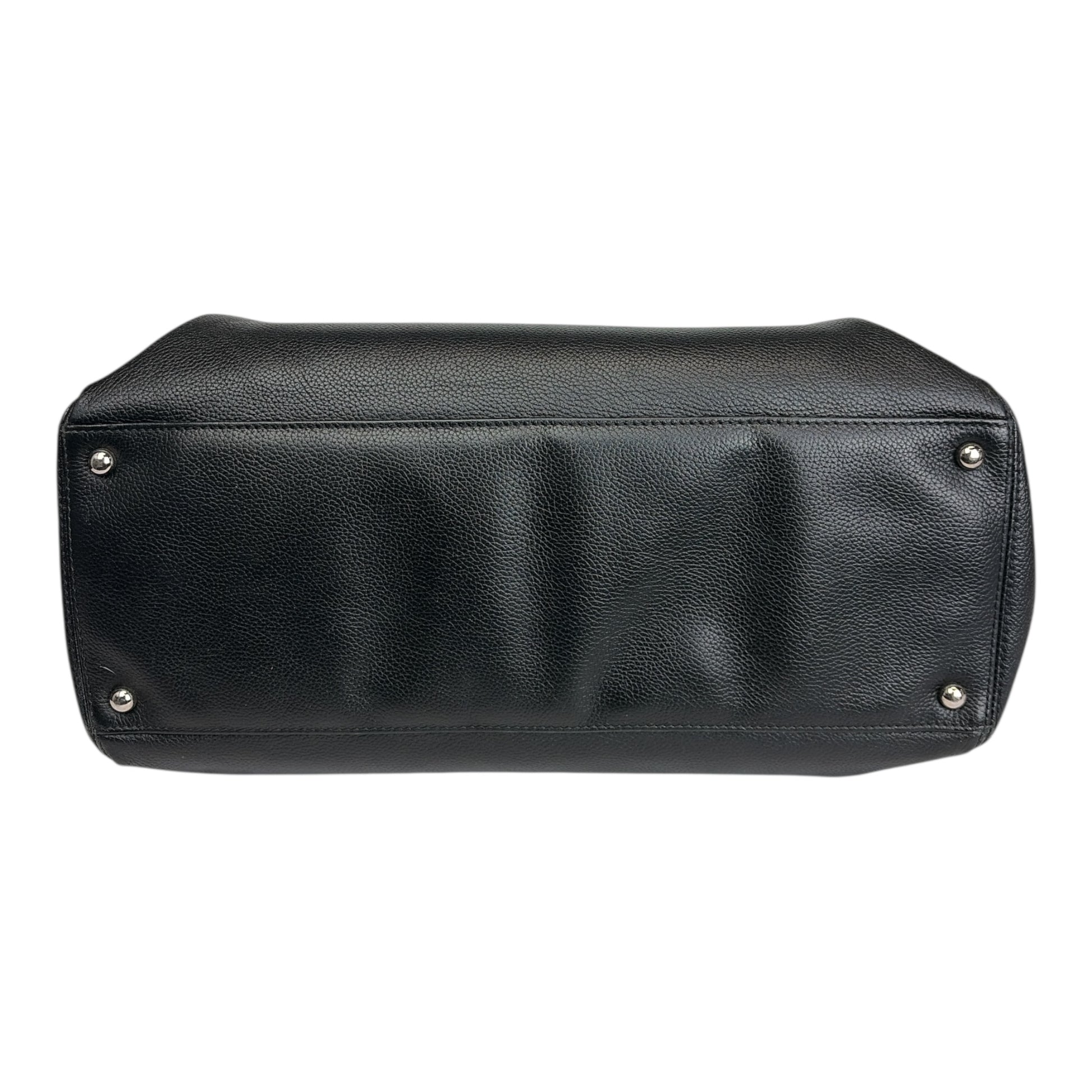 Approximate measurements: Height: 9" (23 cm) Width: 13.75" (35 cm) Depth: 5.5" (14 cm) Handle Drop: 6.5" (16.5 cm) Strap Drop: 17" (43 cm) Composition: Leather, textile lining, metal hardware.