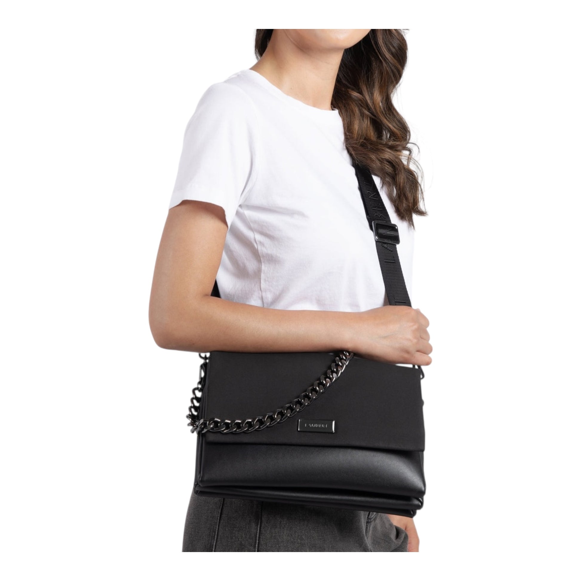 The VALERIA is the handbag designed to adapt to your daily life. The wide metal chain contrasts the neat and simplistic appearance of the bag for a very fashionable look. Including several compartments for your belongings, optimizing your storage will no longer be an issue. Wear the Valeria for all occasions whether with the chain for a chicer style or simply with the strap over the shoulder for a casual look.