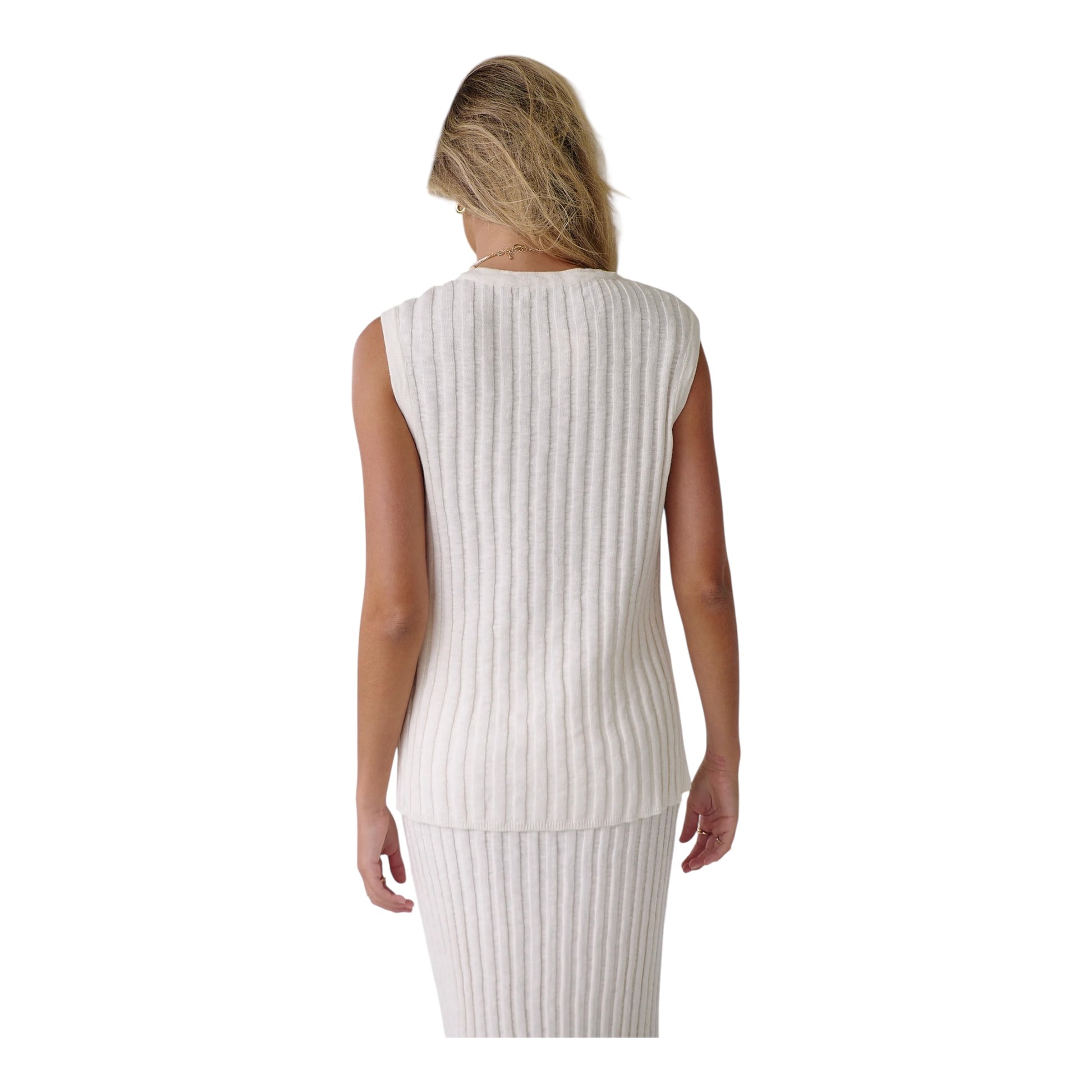 Vest: V-neckline, vented hem feature, dropped armholes, textured ribbed fabrication